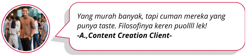 Setelah berbagai brand dan klien mempercayakan project mereka kepada kami, maka kini saatnya kamu ambil langkah berikutnya. Karena itu, silakan hubungi kami untuk memulai obrolan dan kolaborasi kita. Selain itu, coba cek sekali lagi apa kata mereka yang sudah lebih dulu bekerja sama dengan kami.